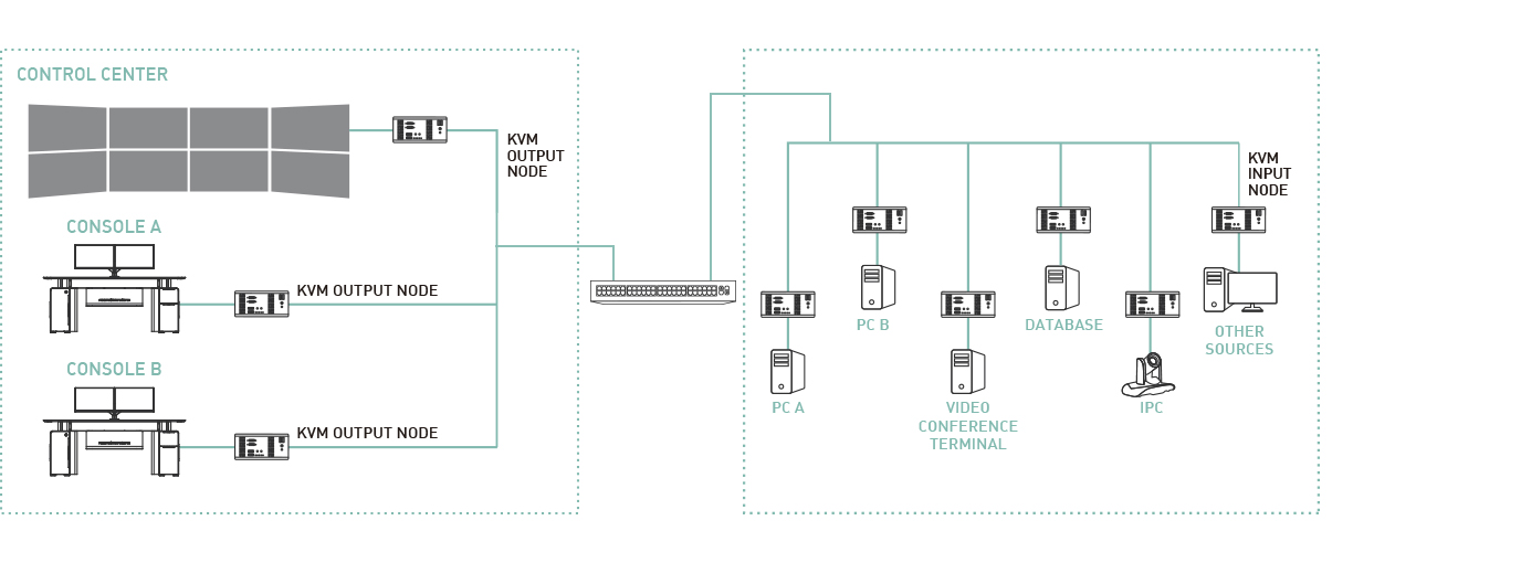 Solution based on the encoding and decoding of video, keyboard and mouse signals through a dedicated network.